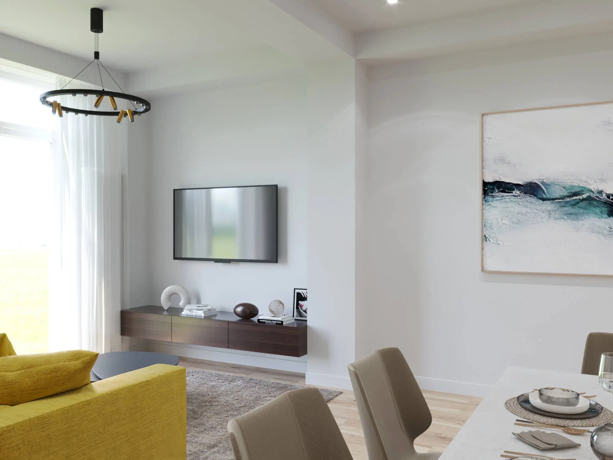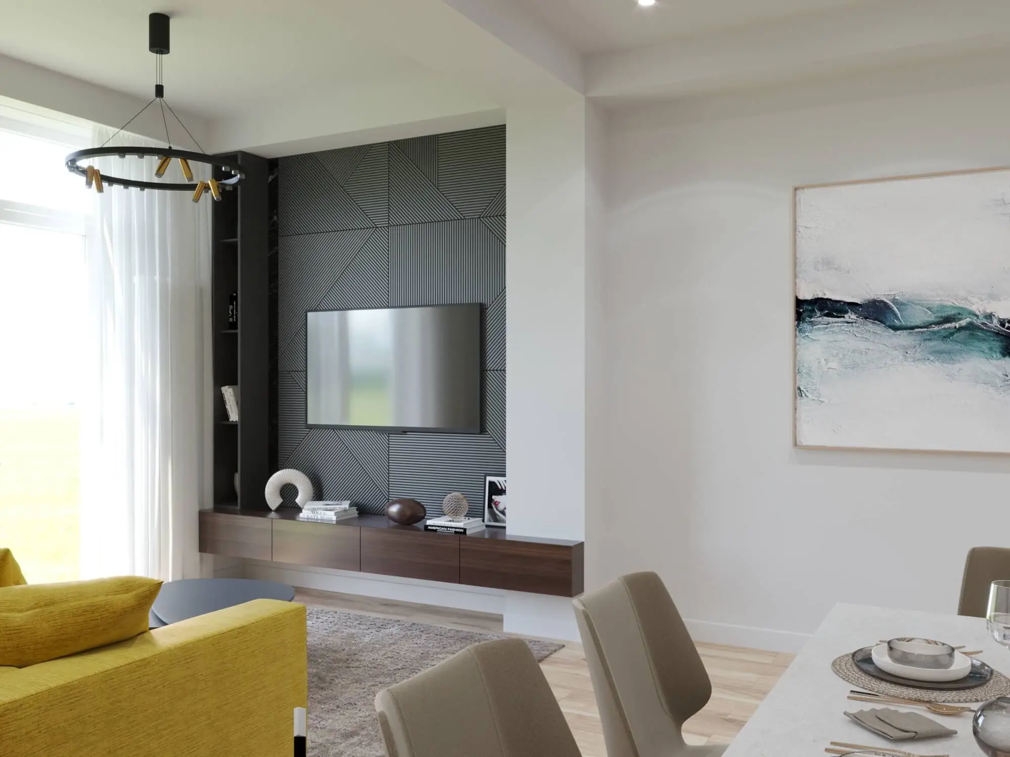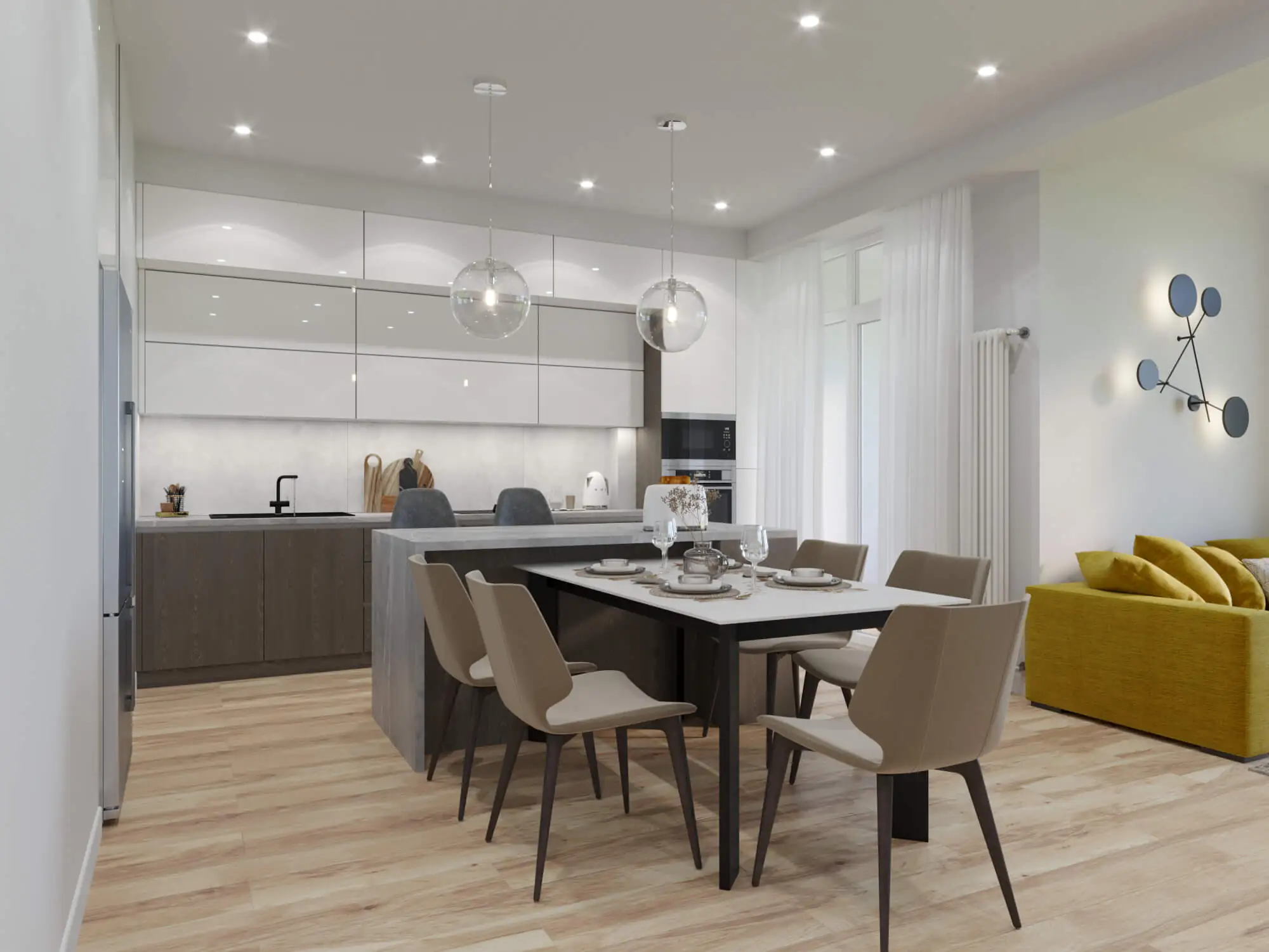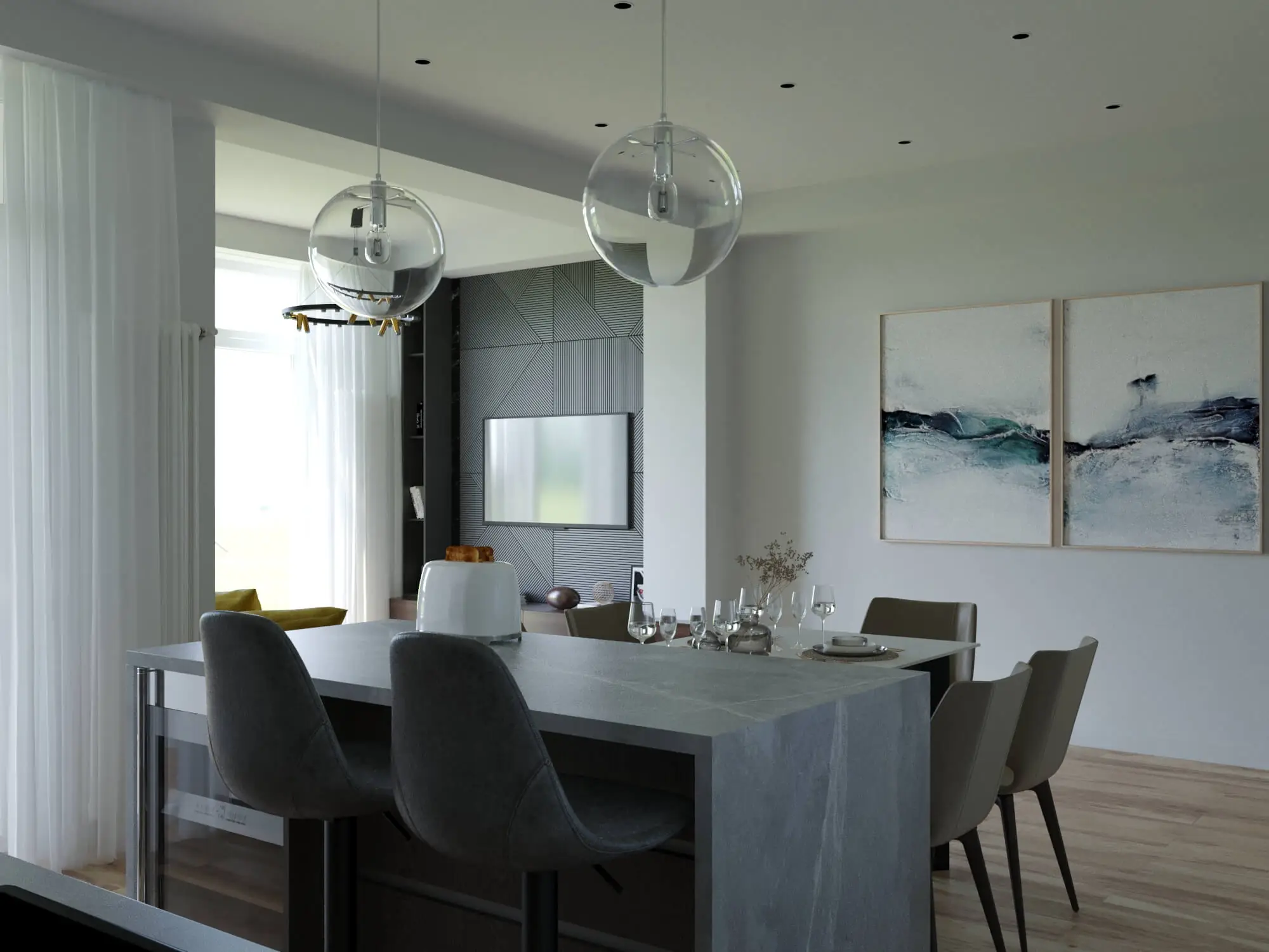 By admin_bondina / May 14, 2025 Grey Apartment with Yellow Details – bathroom, kitchen-living room Contact me